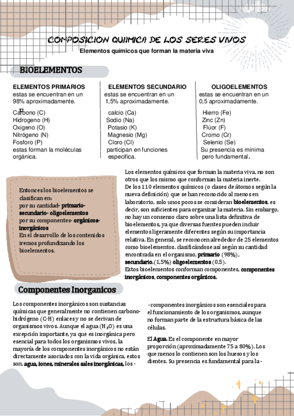 es un resumen de las caracteristica de los seres vivos, bioelementos y organizacion de los seres vivos