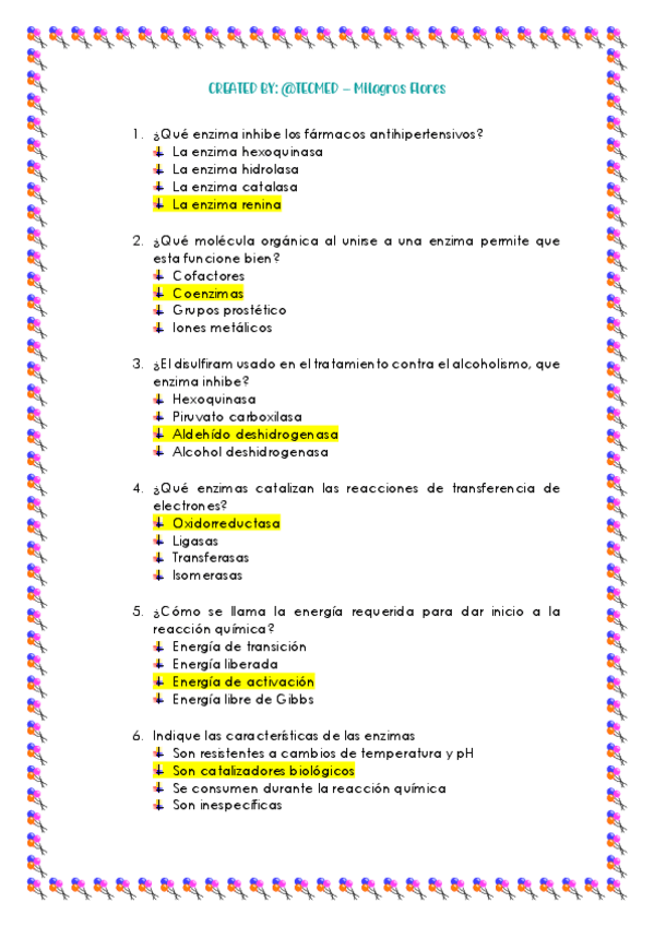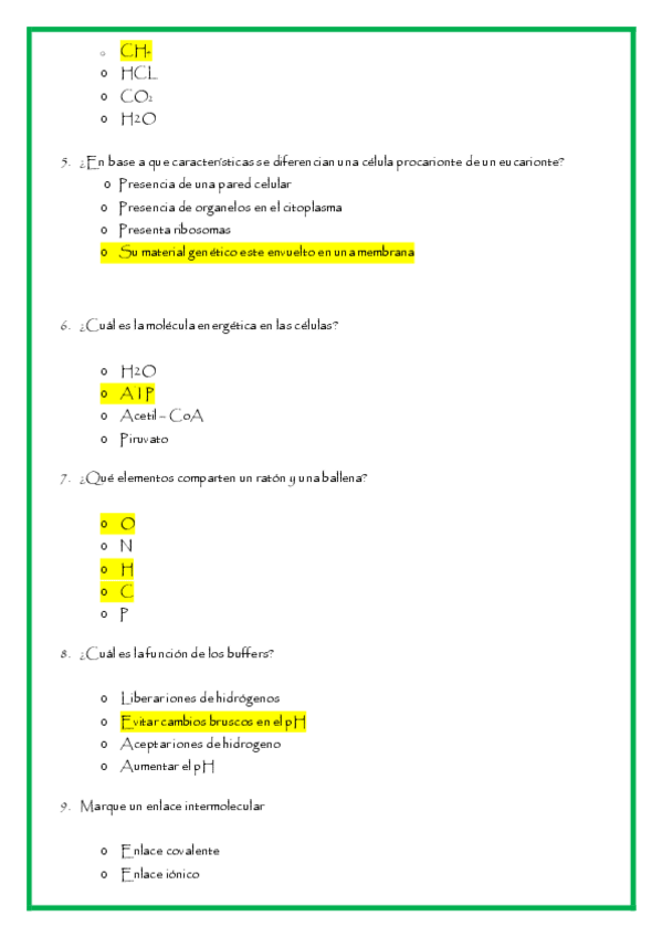 Cuestionario de bioquímica - BIOQUIMICA - MEDICINA