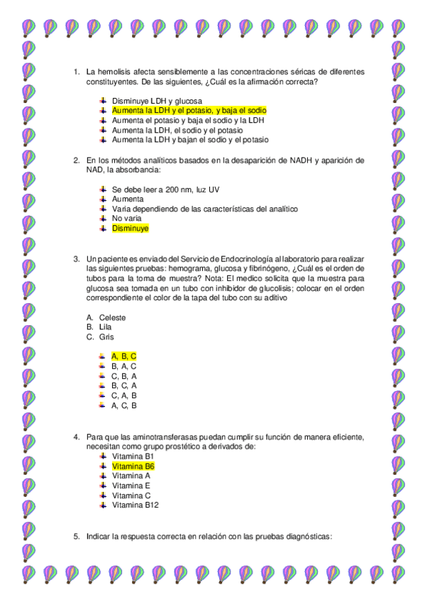 Cuestionario para reforzar o practicar en el examen de bioquímica clínica