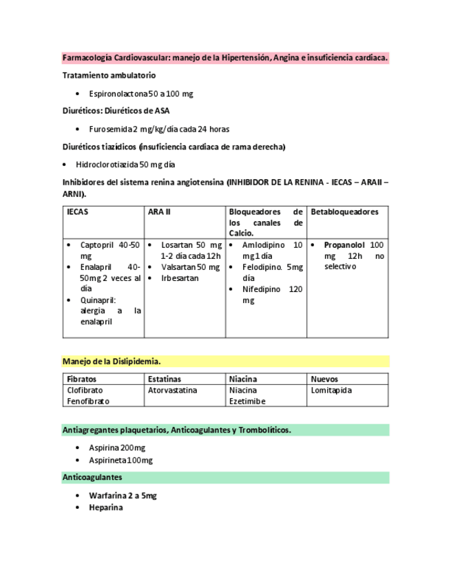 Apuntes generales resumidos de farmacos por grupos y subgrupos.