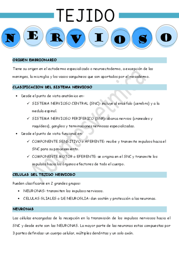 He publicado nuevos apuntes de 1º Histología, Embriología y Teratología: tejido-nervioso.pdf