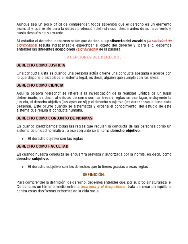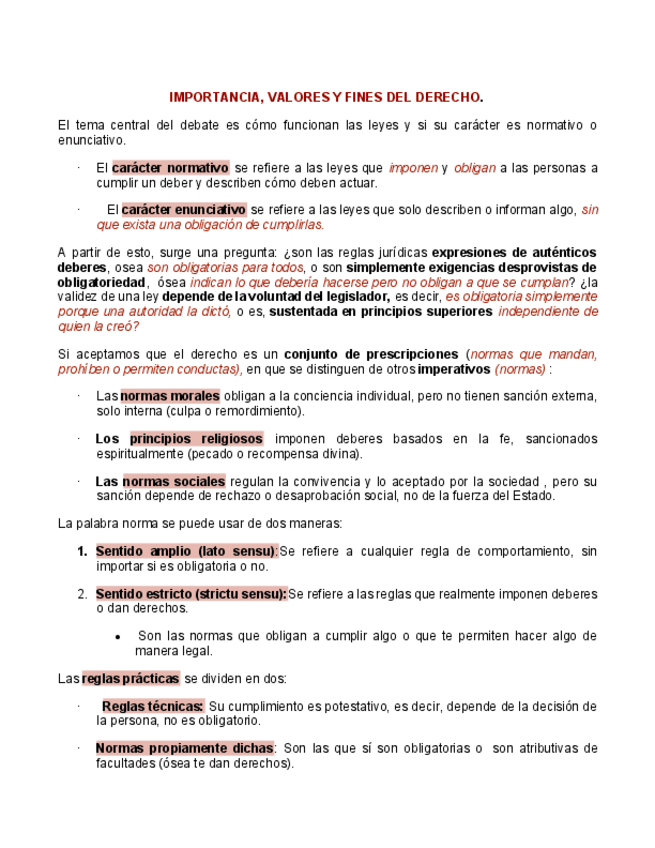 Introducción al origen del derecho. Importancia, valores y fines del derecho. Acepciones del derecho. Definición. Clasificación de las normas. Vigencia, validez y eficacia de las normas jurídicas. Ámbito de aplicación de las normas jurídicas.