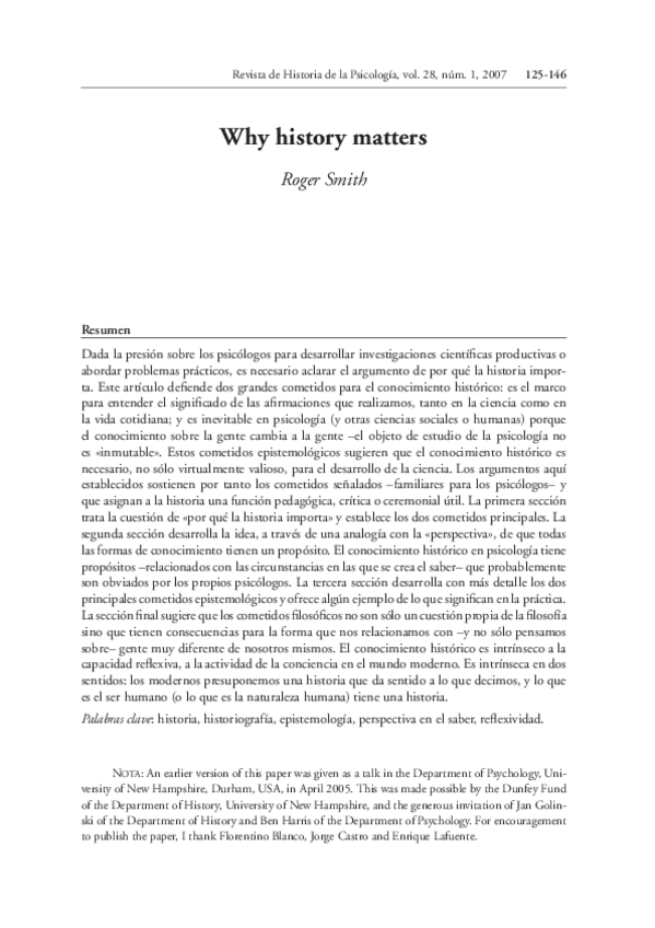 He publicado nuevos otros de 1º Historia y fundamentos de la psicología: Roger-Smith-Why-History-Matters-Revista-de-Historia-de-la-Psicologia-2007.pdf