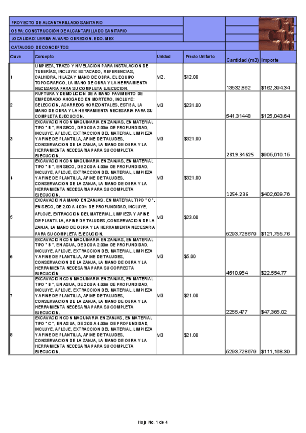 Consiste en un ejemplo de catalogo de conceptos sobre un proyecto de alcantarillado
