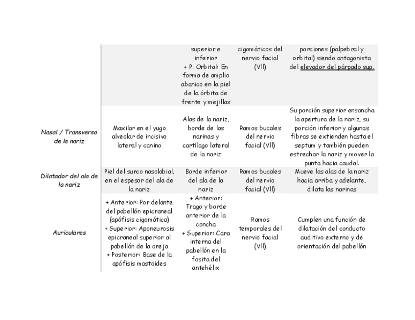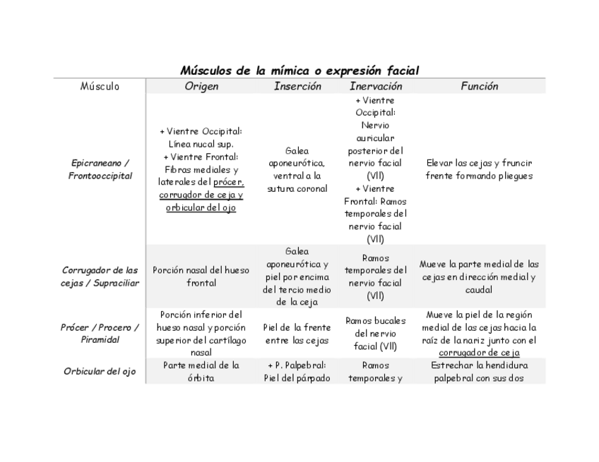 Músculos de cabeza y cuello por origen, inserción, inervación y función