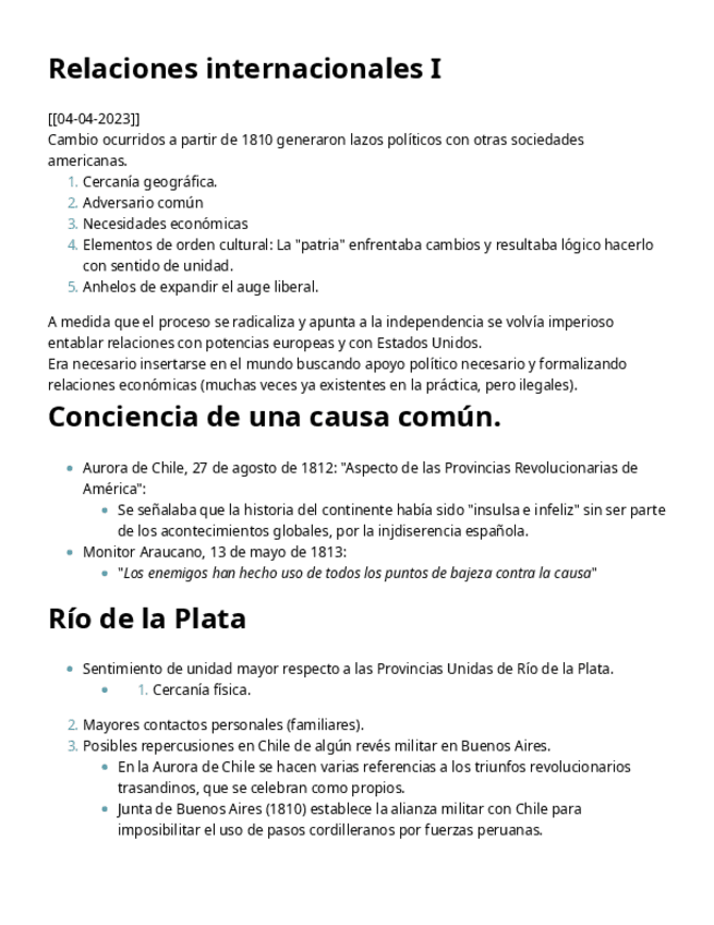 He publicado nuevos apuntes de 4º Historia de Chile - Siglo XIX: Relaciones-internacionales-I.pdf