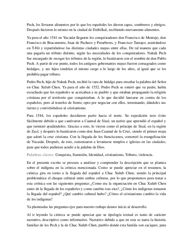 Trabajo sobre la crónica: HISTORIA Y CRÓNICA DE CHAC XULUB CHEN