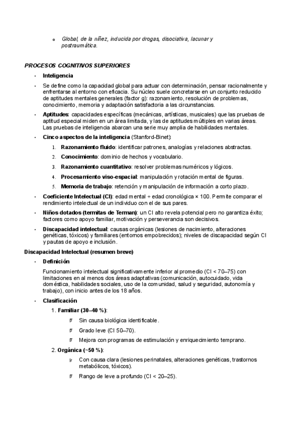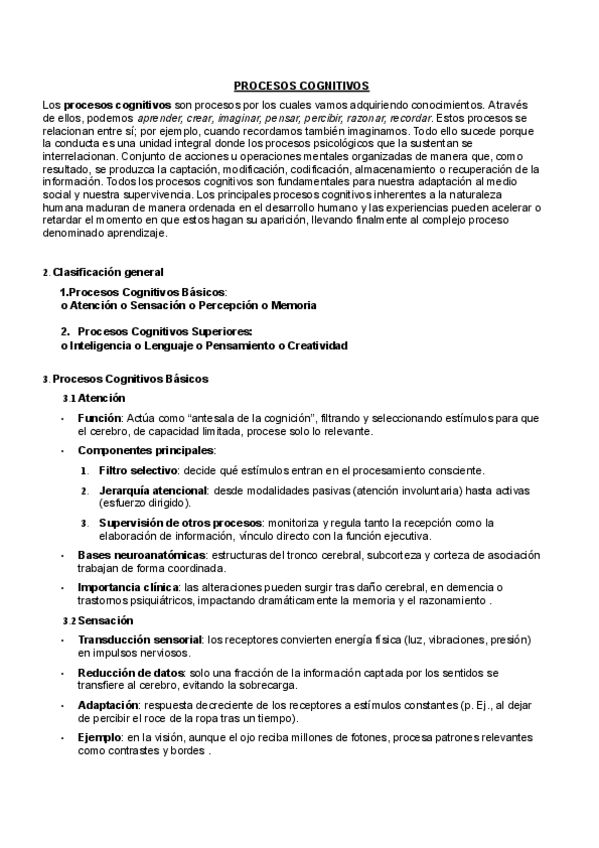 procesos cognitivos, incluidas las funciones cognitivas básicas y superiores, como la atención, la sensación, la percepción, la memoria, la inteligencia, el lenguaje, el pensamiento y la creatividad.