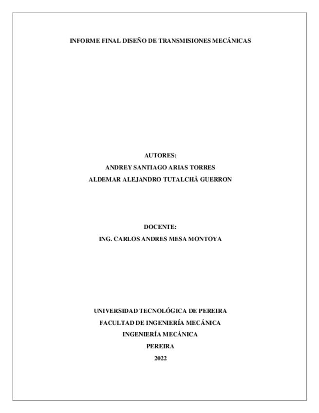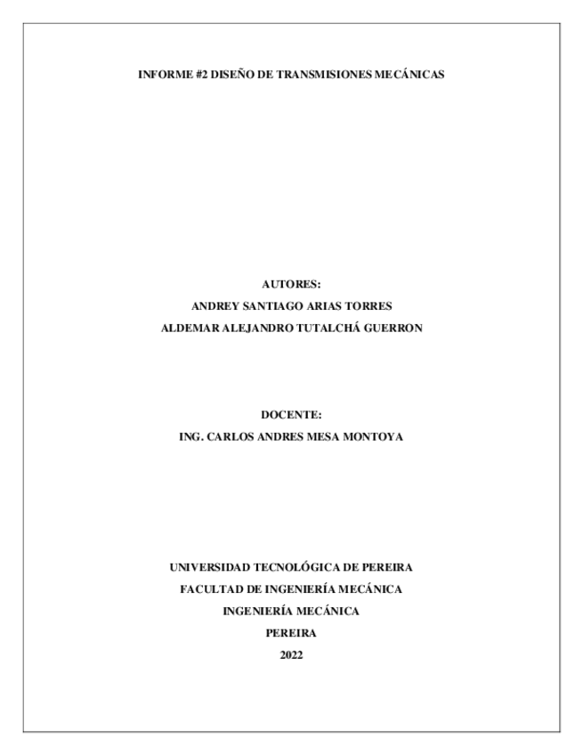He publicado nuevos trabajos de 8º Diseño de Transmisiones y Mecánicas: Informe-2-Andrey-Santiago-Arias-Aldemar-Alejandro-Tutalcha.pdf