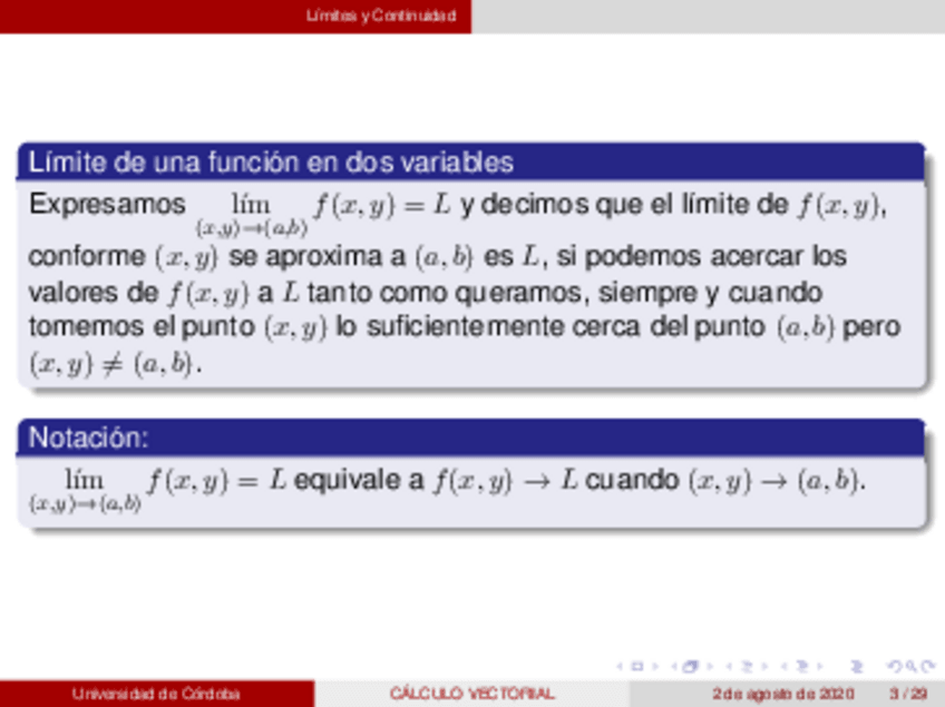 limites y continuidad de funciones de dos y tres variables