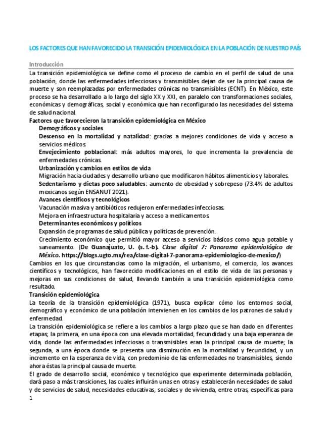 Los factores que la transición epidemiológica en la población de nuestro país
