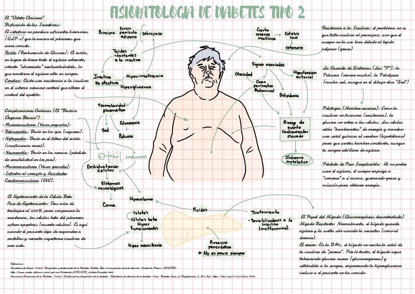 Apunte claro y estructurado sobre la fisiología y fisiopatología de la Diabetes Mellitus tipo 2, elaborado para estudio en Medicina. Incluye: Resistencia a la insulina en músculo, hígado y tejido adiposo Disfunción de las células beta pancreáticas Alterac