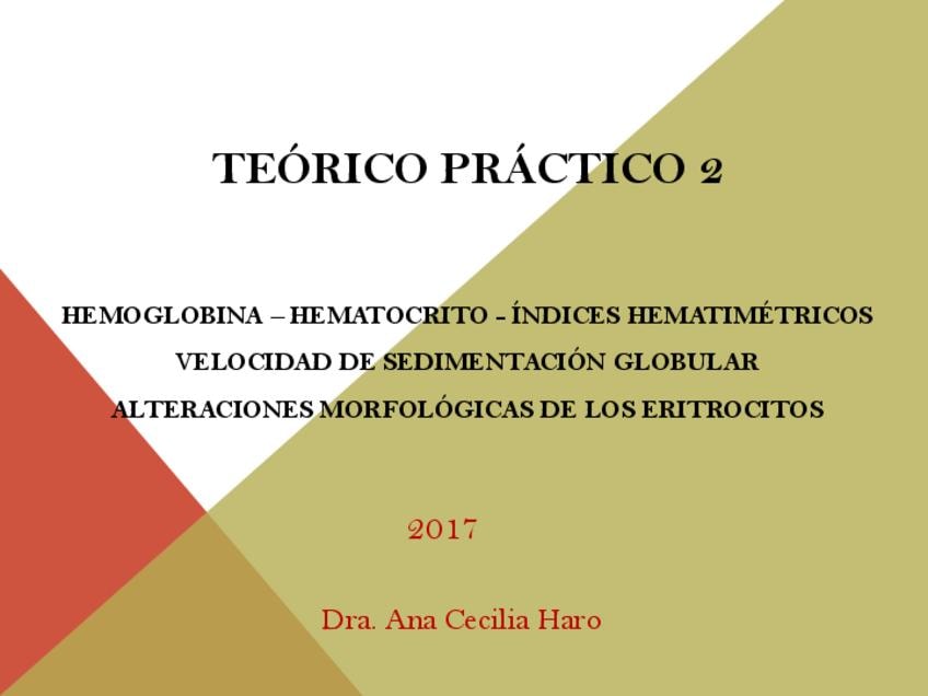 HEMOGLOBINA – HEMATOCRITO - ÍNDICES HEMATIMÉTRICOS VELOCIDAD DE SEDIMENTACIÓN GLOBULAR ALTERACIONES MORFOLÓGICAS DE LOS ERITROCITOS