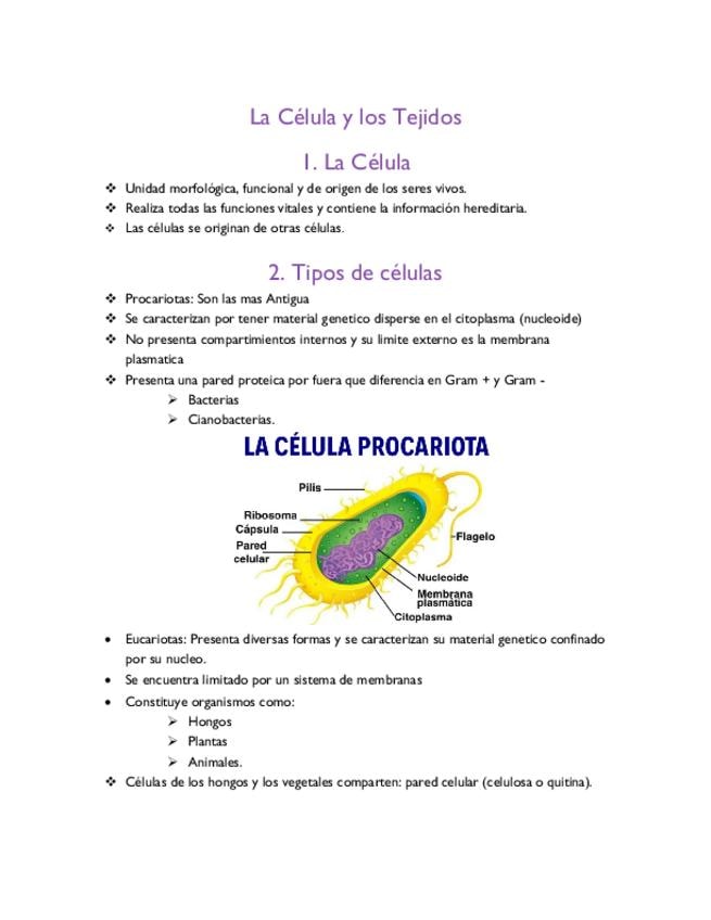 Resumen de células y tejidos.