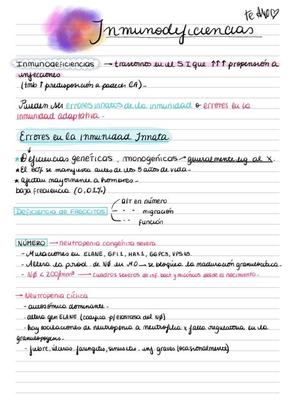 Apunte sobre inmunodeficiencias basado en el material de la catedra y el libro Abbas. Ideal examen oral