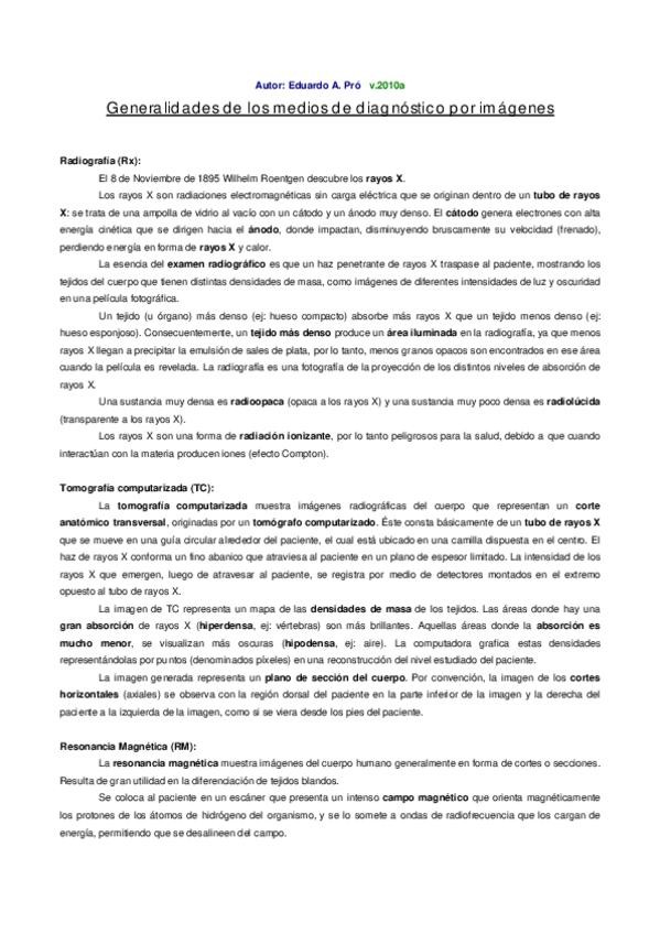 Resumen de los medios diagnosticos por imagenes (rx, rm, tc) de Anato Cat 2