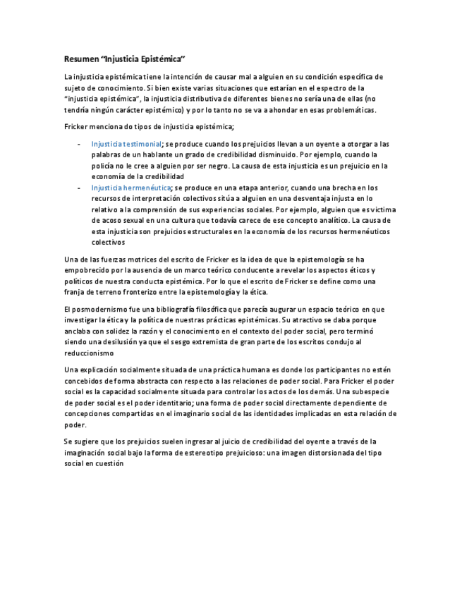 He publicado nuevos apuntes de 1º Filosofía y Epistemología de la Psicología: Resumen-Injusticia-Epistemica.-Texto-de-Fricker.pdf