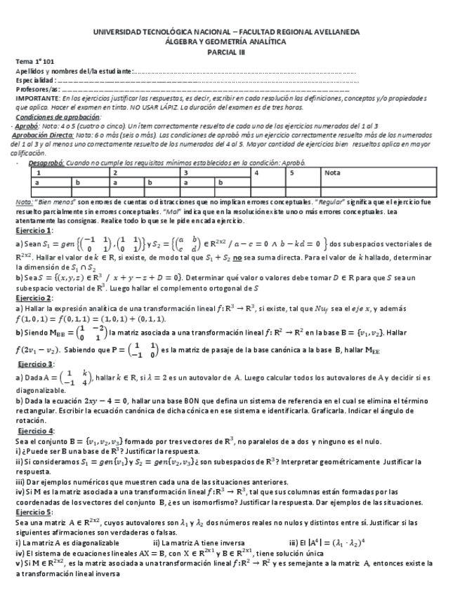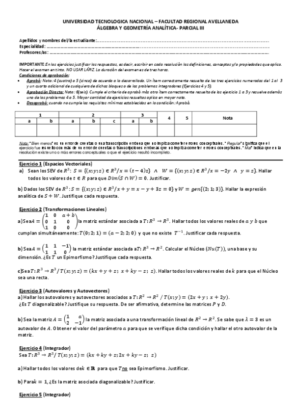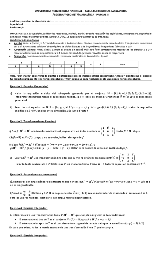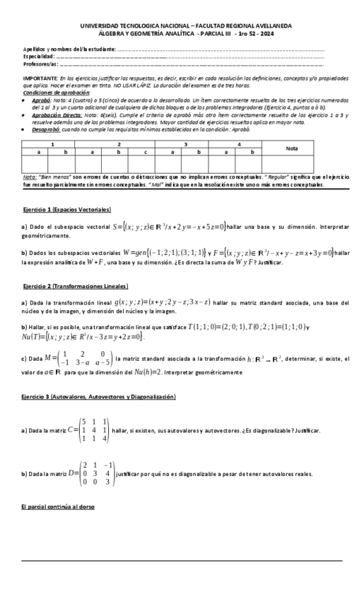 Parcial 3 - Sobre espacios vectoriales, Transformaciones lineales y Autovalores - Autovectores