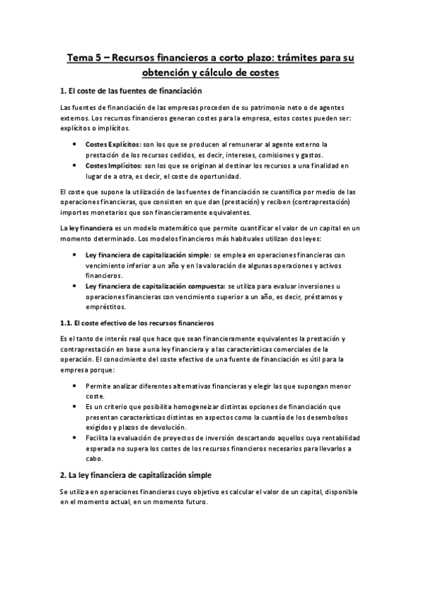 Resumen Tema 5 Gestión Económica y Financiera de la Empresa