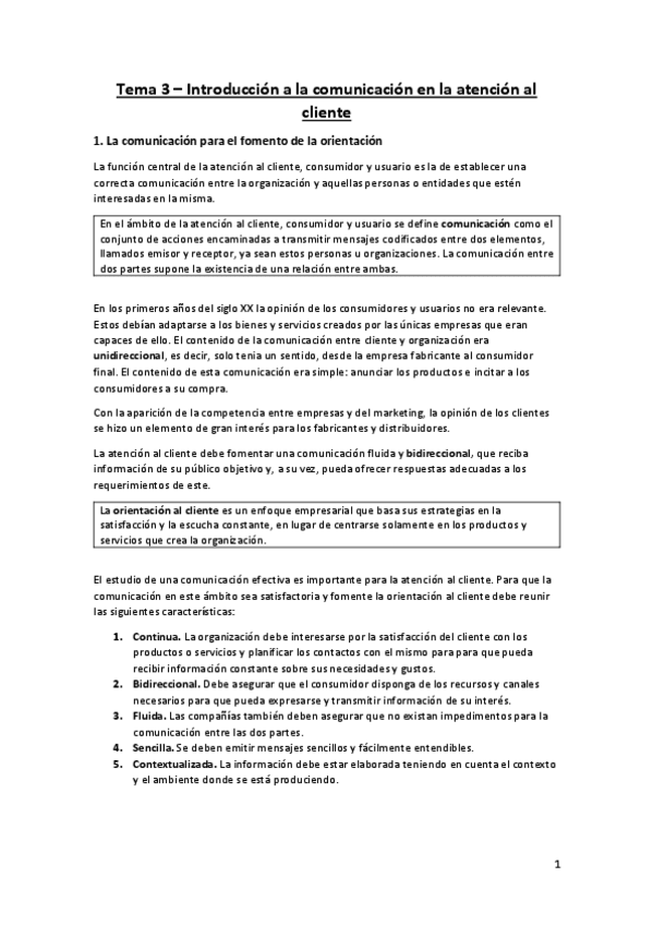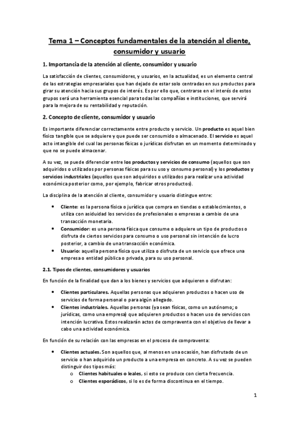 Resumen Tema 1 y 2 Atención al Cliente, Consumidor y Usuario