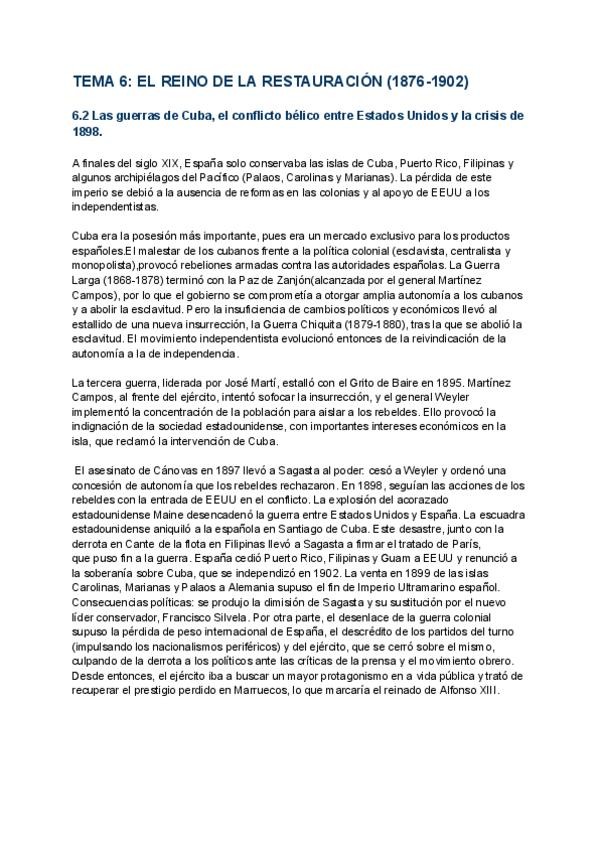 TEMA 6 ,TEMA 6.2 Las guerras de Cuba, el conflicto bélico entre Estados Unidos y la crisis de 1898.