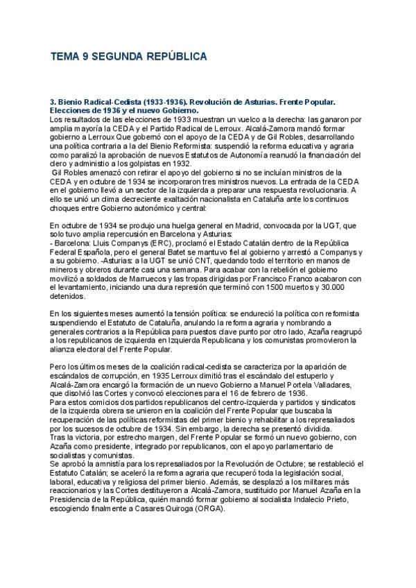 TEMA 9 /9.3. Bienio Radical-Cedista (1933-1936). Revolución de Asturias. Frente Popular. Elecciones de 1936 y el nuevo Gobierno.