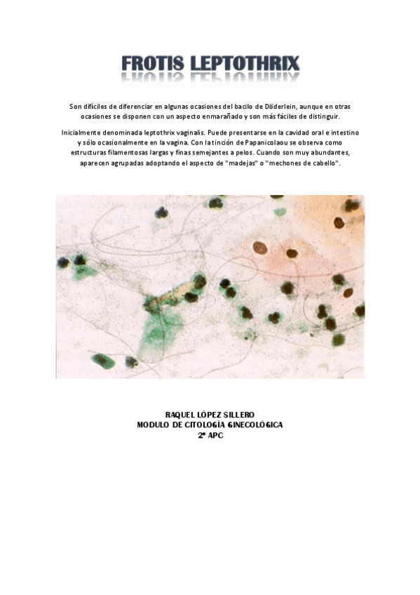He publicado nuevos apuntes de Citología ginecológica: FROTIS-LEPTOTHRIX.pdf