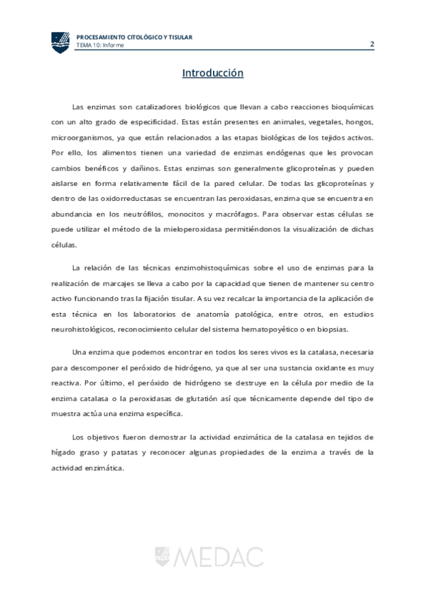 He publicado nuevos trabajos de Procesamiento citológico y tisular: Reacciones Enzimáticas Informe laboratorio.pdf