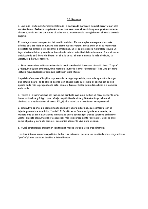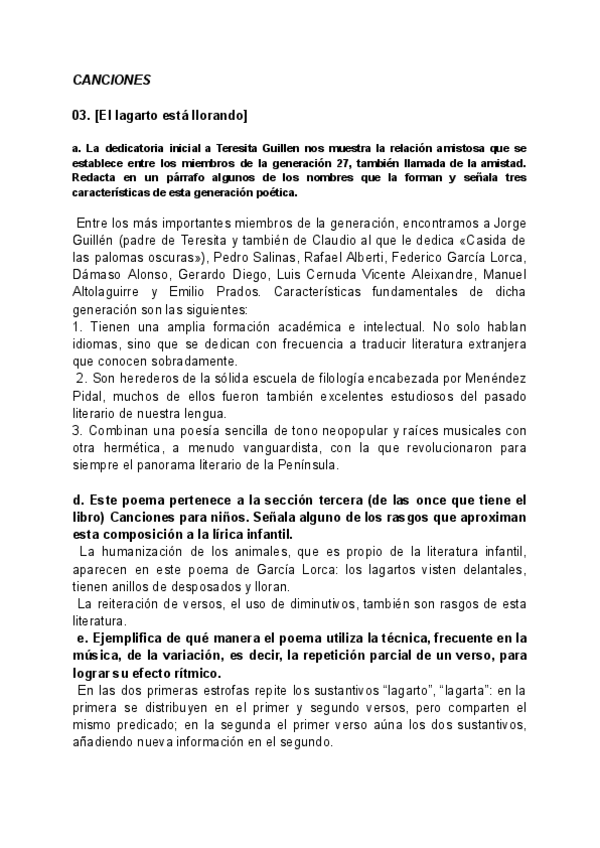 POEMAS GARCÍA LORCA - PREGUNTAS SELECTIVIDAD