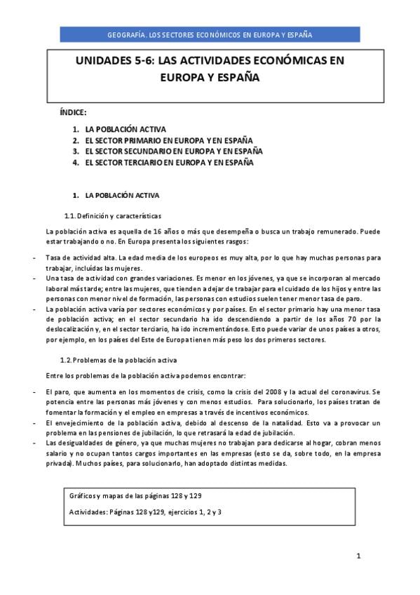 Apuntes 3 eso UNIDADES 5-6 GEOGRAFÍA LAD ACTIVIDADES ECONÓMICAS EN EUROPA Y ESPAÑA