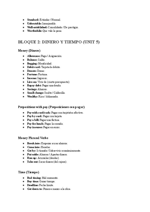 Distintos tipos de vocabulario para emplear durante los writing con expresiones y vocabulario de niveles altos como B2 casi C1