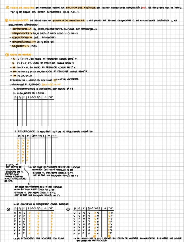 Tabla de variables, formalización de enunciados, tabla de la verdad y conclusión.