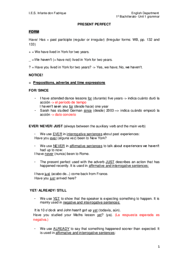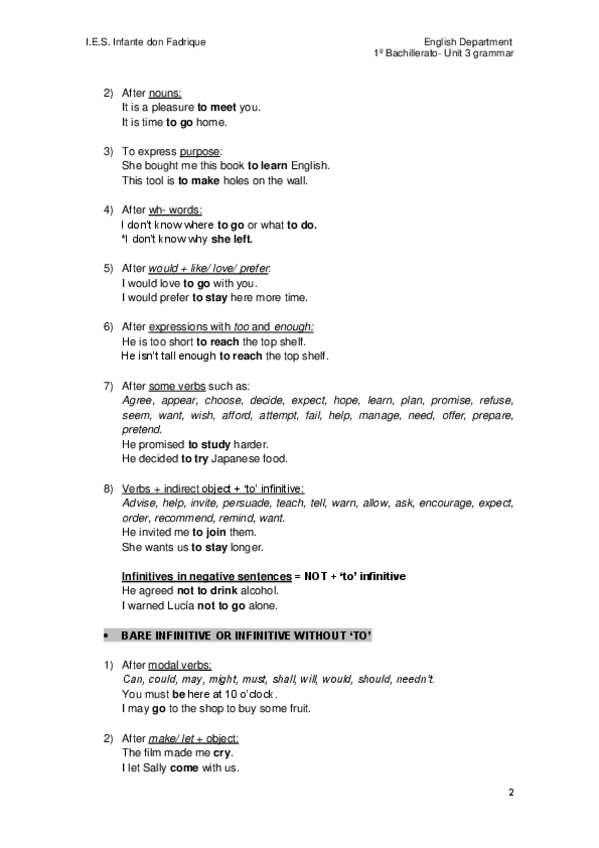 Asignaturas de INFANTE DON FADRIQUE - Bachillerato
