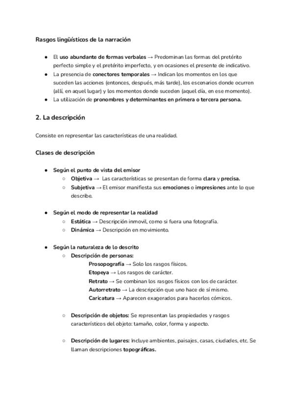1. La narración 2. La descripción 3. Préstamos y extranjerismos 4. Las categorías gramaticales II 5. Uso de las letras b/v, ll/y, h