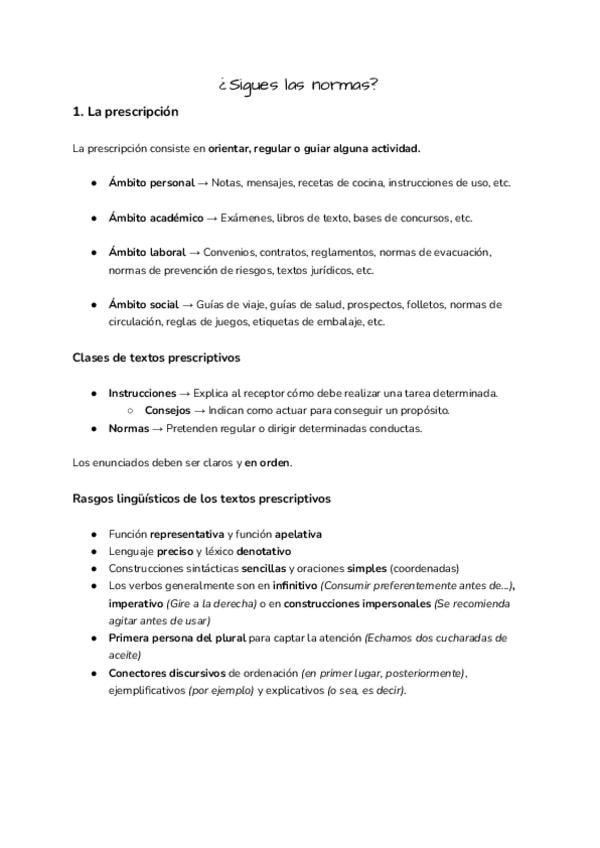 1. La prescripción 2. Estructura y formación de palabras 3. Los grupos sintácticos