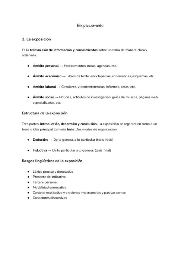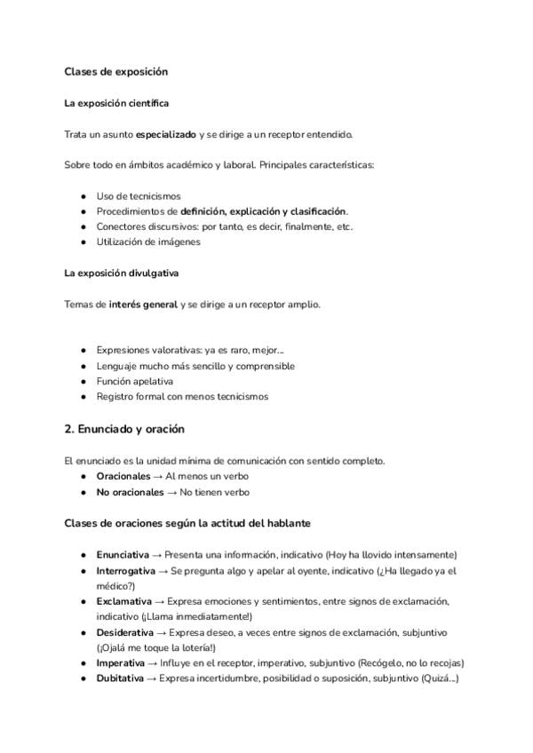 1. La exposición 2. Enunciado y oración 3. El atributo y el complemento predicativo 4. Complementos