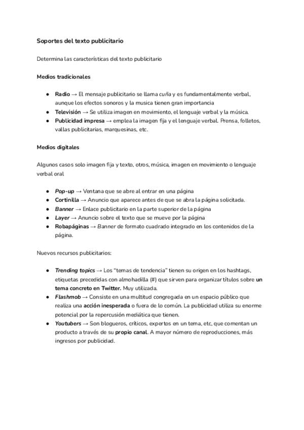 1. La publicidad 2. La oración subordinada sustantiva 3. La oración subordinada de relativo
