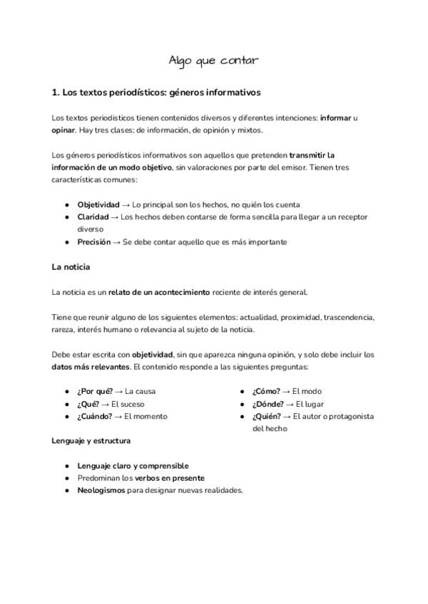 1. Los textos periodísticos: géneros informativos 2. El significado de las palabras 3. Oraciones subordinadas adverbiales o construcciones