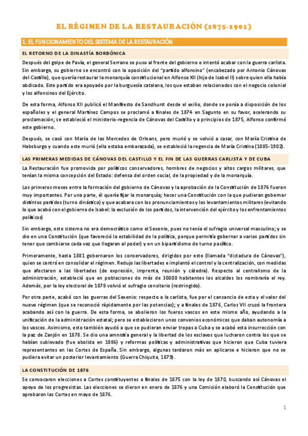 Apuntes sobre la Restauración Borbónica española.