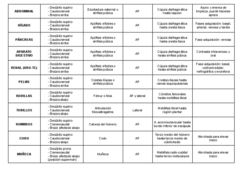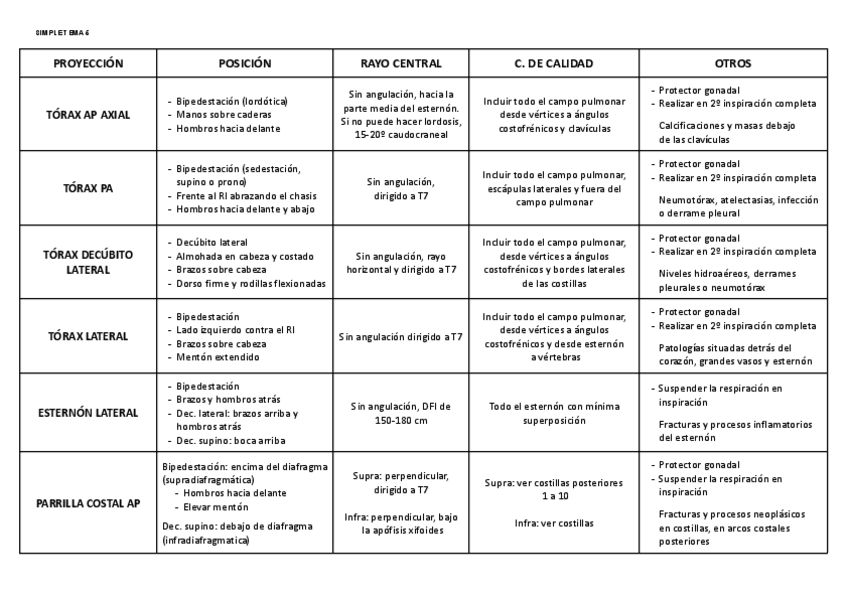 He publicado nuevos apuntes de Técnicas de Radiología Simple: Tabla simple T6.pdf