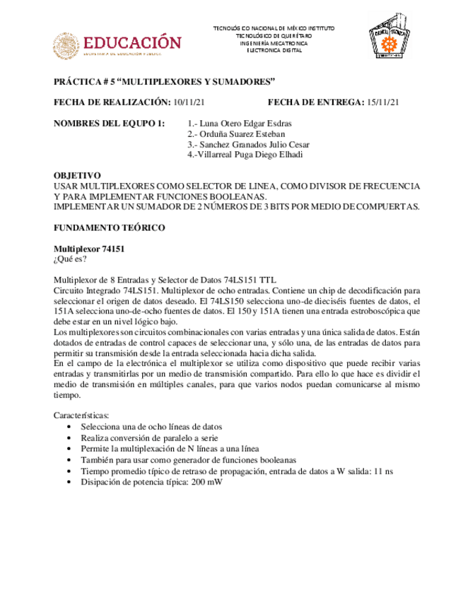He publicado nuevos practicas de 6º Electrónica Digital: PRACTICA5MUXSUMEQUIPO1.pdf