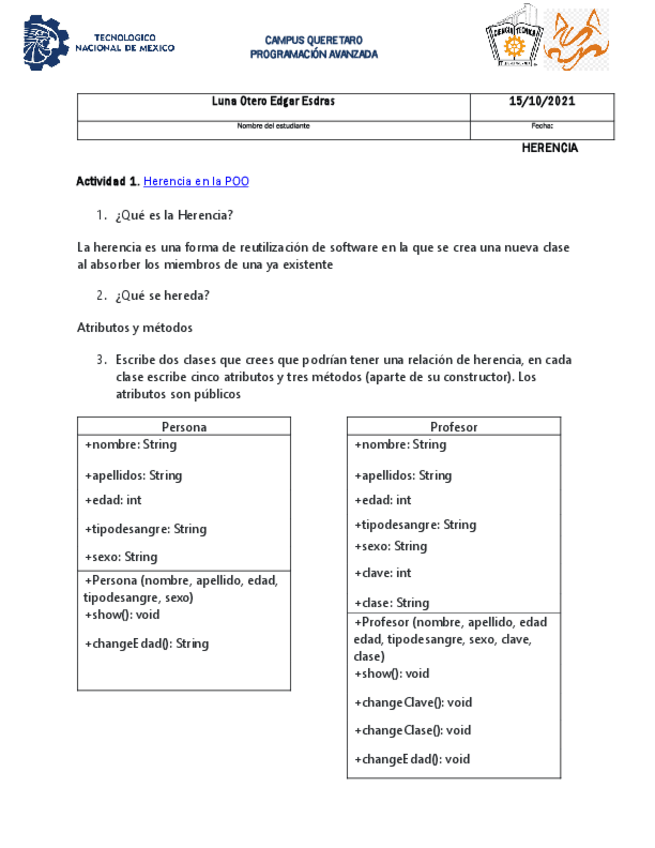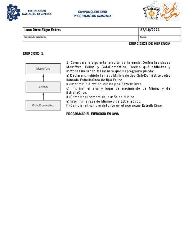 He publicado nuevos ejercicios de 9º Programación Avanzada: HerenciaEjercicios1.pdf