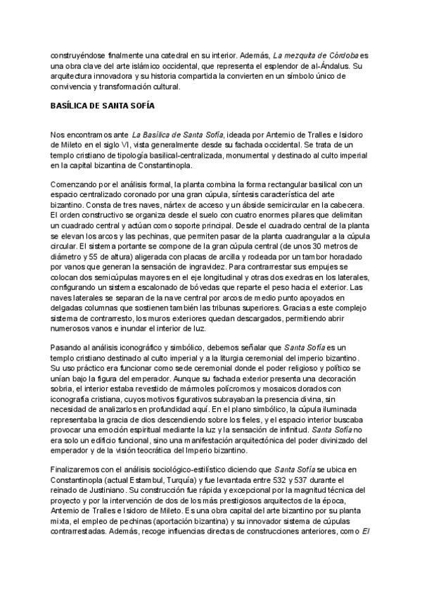 Comentarios completos de historia del arte de LA ALHAMBRA, BASÍLICA DE SANTA SOFÍA y LA MEZQUITA DE CÓRDOBA.