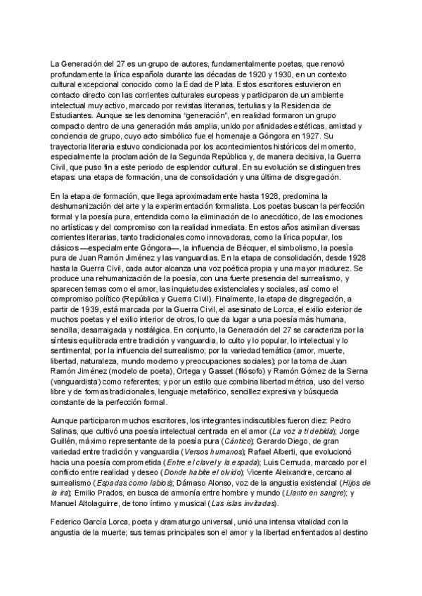 Resumen de la generación del 27: lengua y literatura de 2 de bachillerato