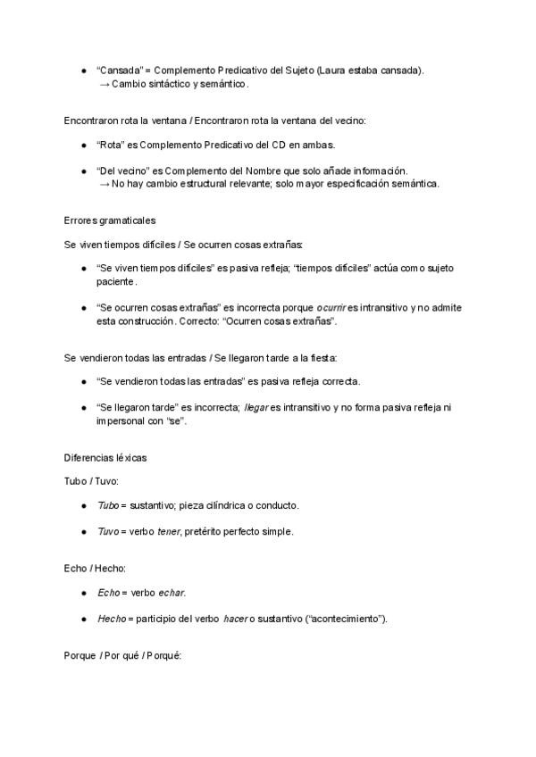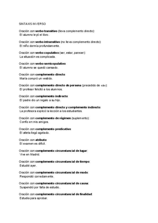 Casos de sintaxis inverso que podrían preguntar en PAU y sus soluciones.