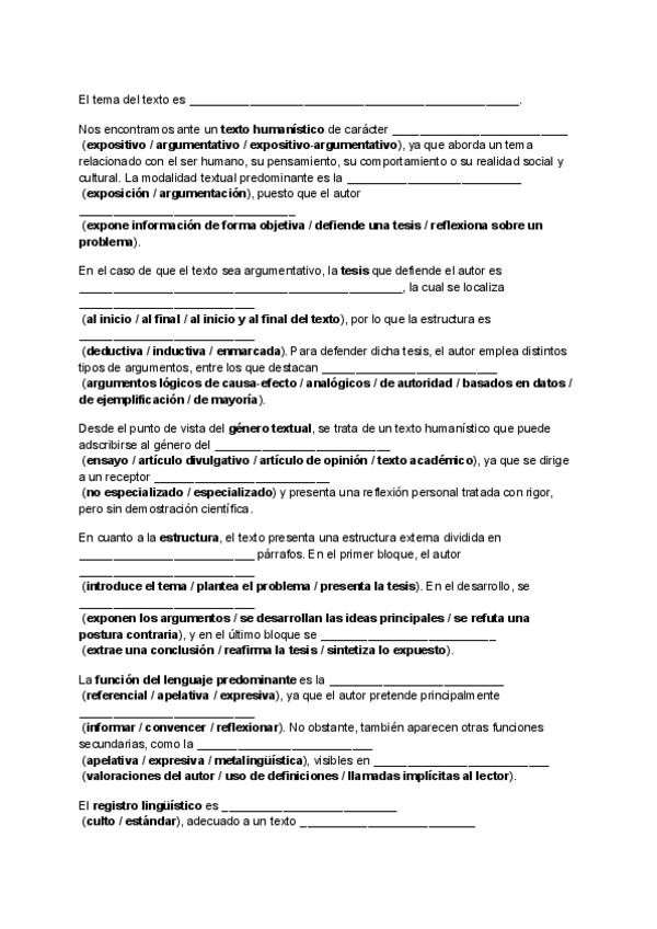 Guión preparado para realizar el comentario de texto humanístico de Lengua y literatura II para la PAU