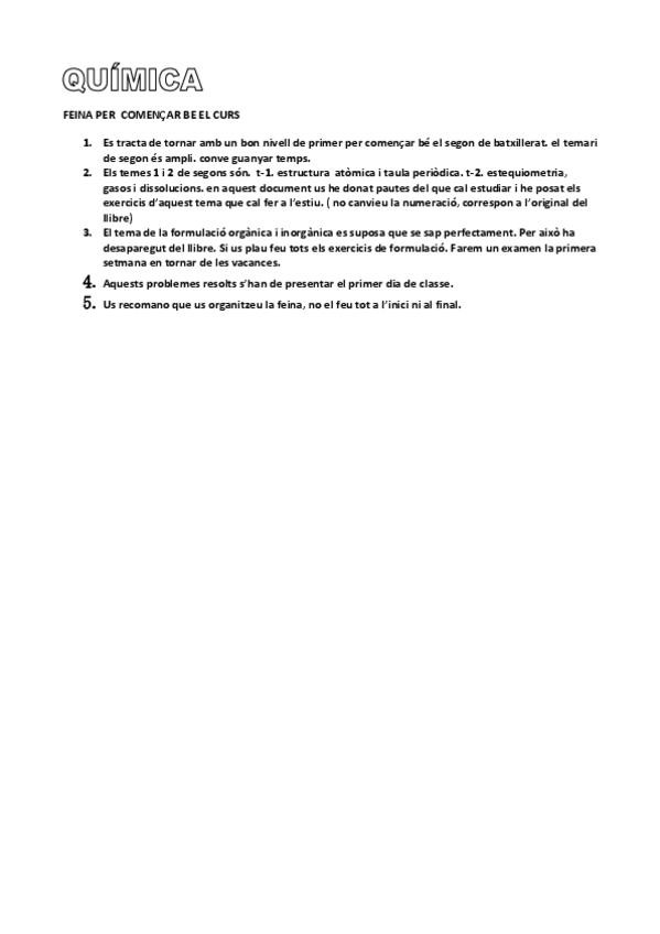 Deberes de vacaciones Química 1º batx