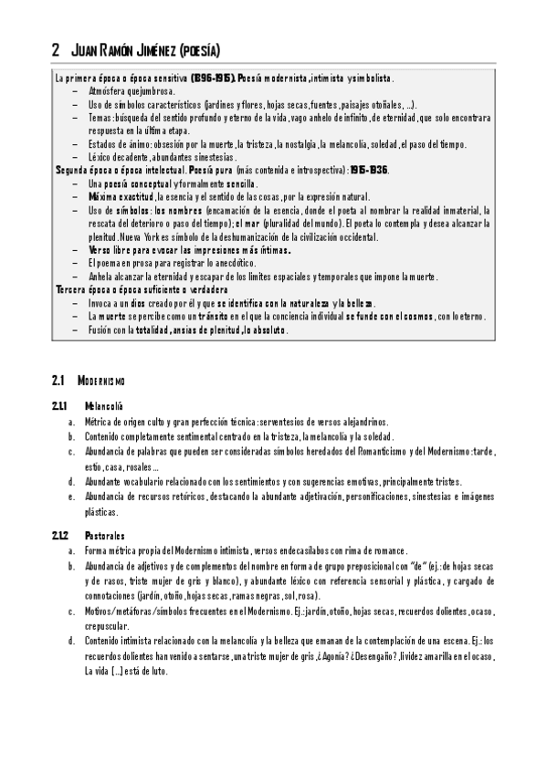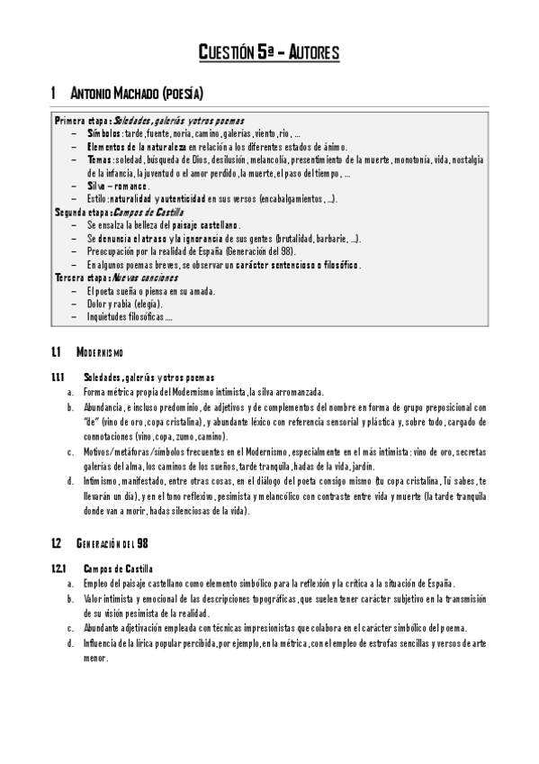 Todos los autores de la cuestión quinta con sus respectivos rasgos (sacados de exámenes de EvAU de la UCLM)