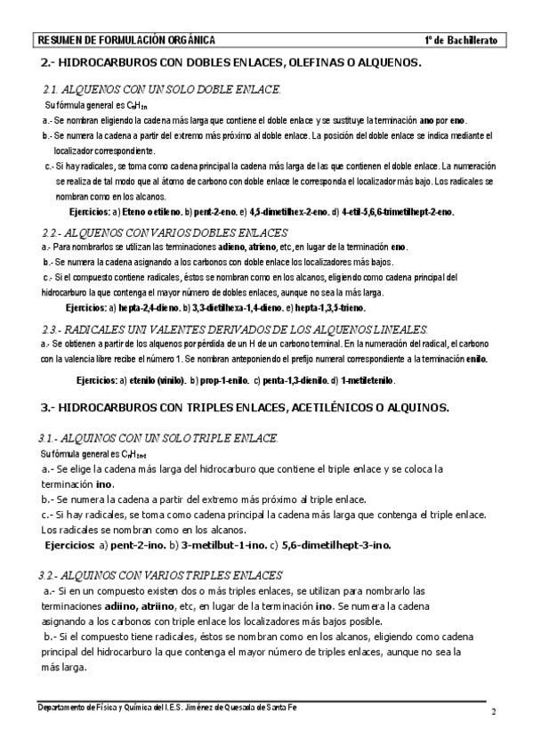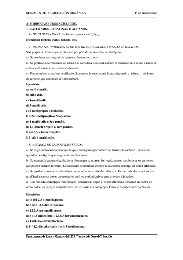 Asignaturas de Bachillerato Jiménez de Quesada