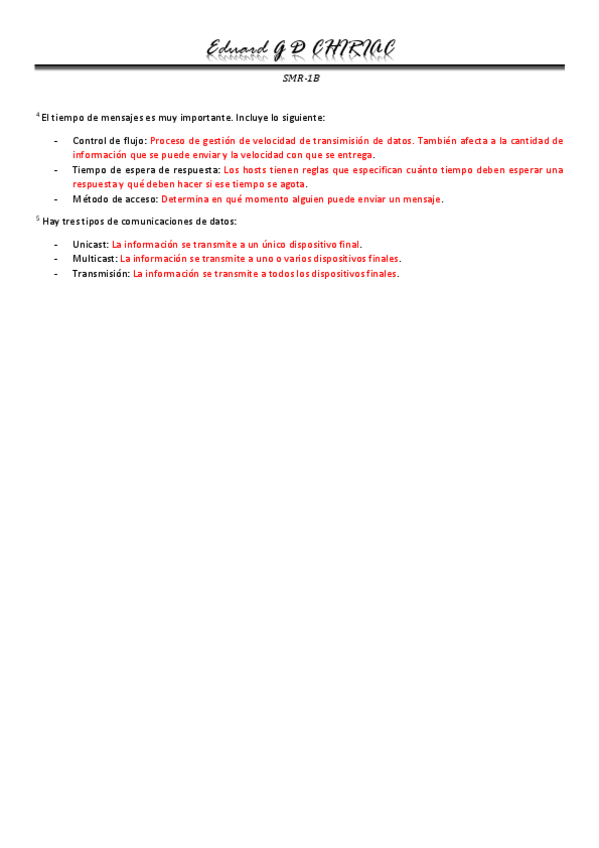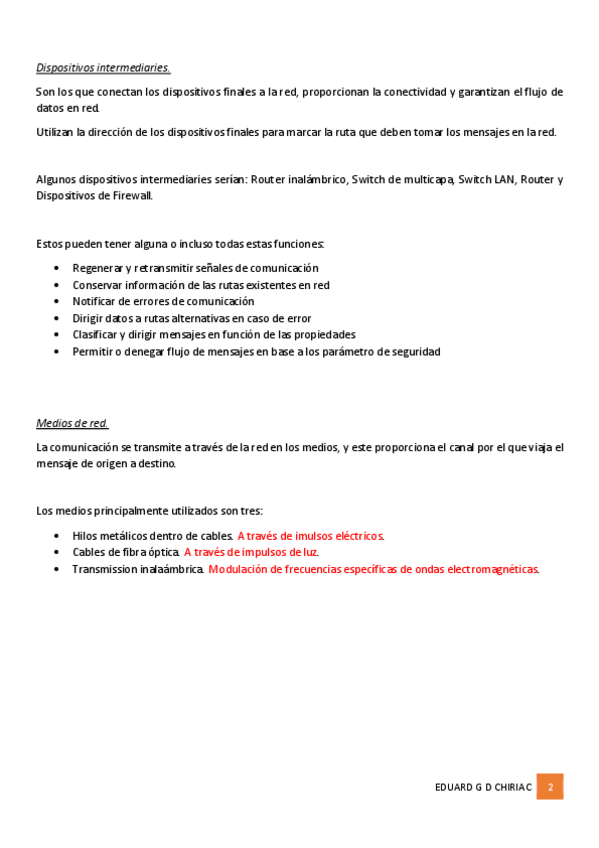Este primer resumen contiene información acerca de los componentes básicos de una red, los tipos de red existentes, así como topologías y otros aspectos básicos de las redes actuales.